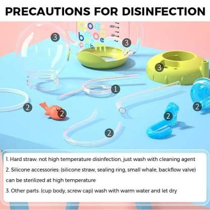 - Silicone accessories(silicone straw, sealing ring, small whale, and backflow valve): Can be sterilized at high temperatures.