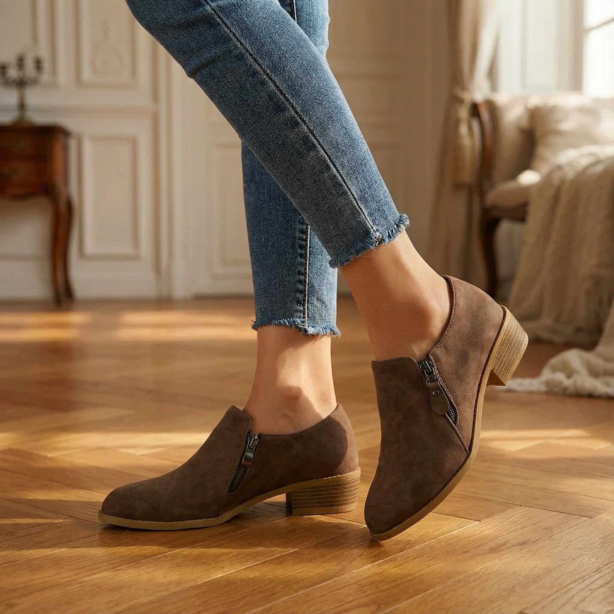 Zip-Up Ankle Boots | Comfortable Low Heel Stylish Side Zipper